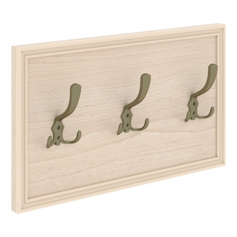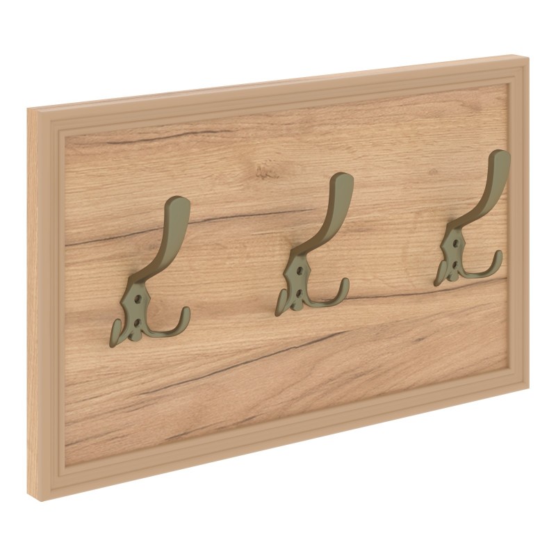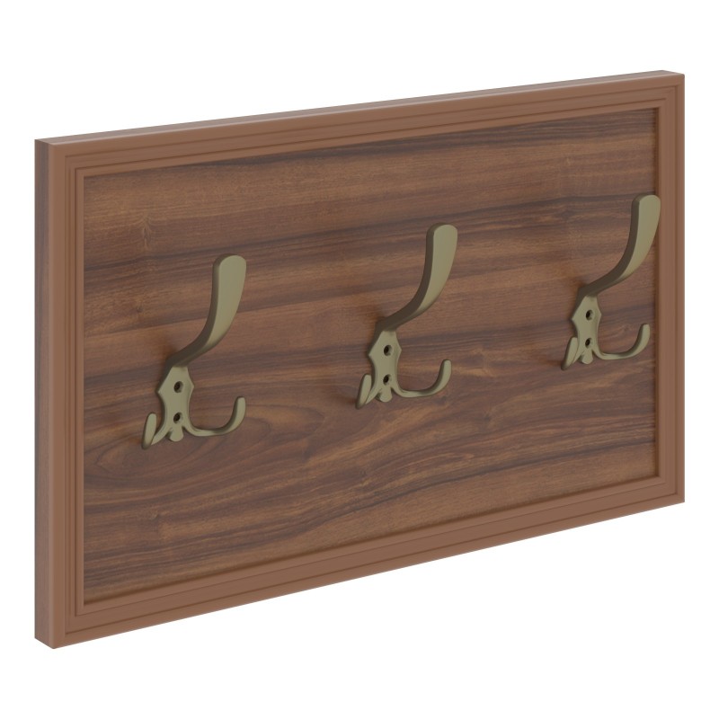 Панель из ЛДСП т.18мм с кромкой ПВХ т.1мм и декоративными крашенными накладками. Комплектуется тремя крючками, цвет бронза и декоративным профилем из фрезерованного крашенного МДФ.